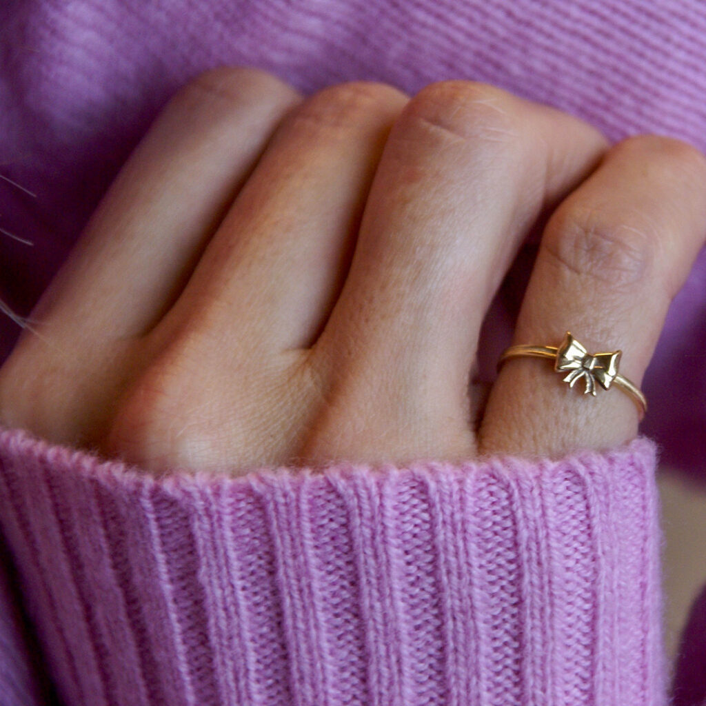 Stel je Minitials Signature Bow Ring samen door je favoriete kleur goud en ringmaat te kiezen.
