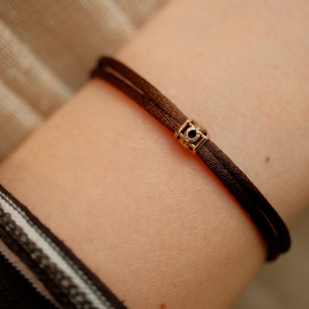 De Minitials Wheel Of Fortune satijnen armband heeft vijf posities met gelukssymbolen. Kies een kleur goud en de perfecte bijpassende satijnkleur. Scroll naar beneden voor meer informatie.